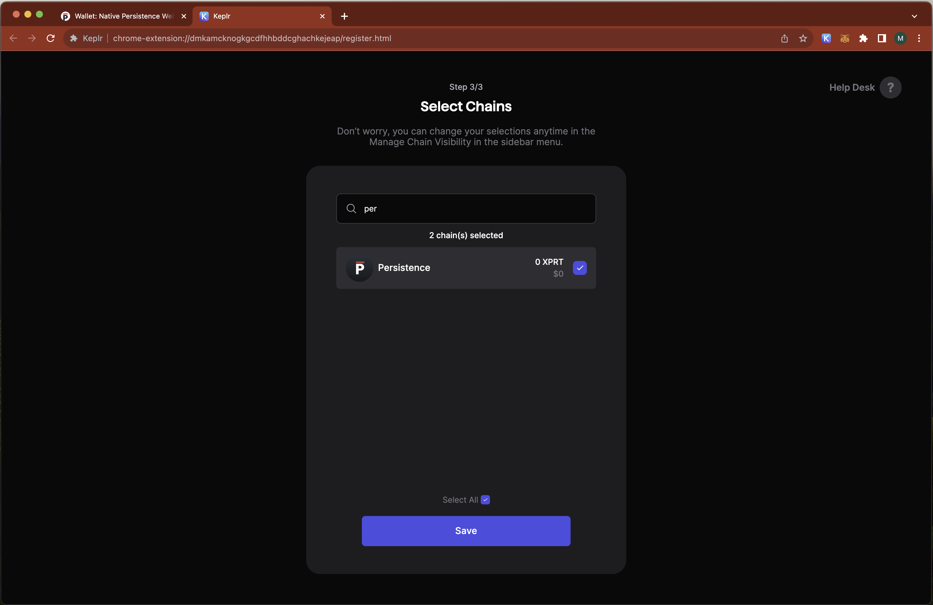 F. Voila! your 118 coin-type persistence wallet address is imported in keplr.