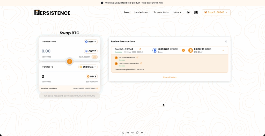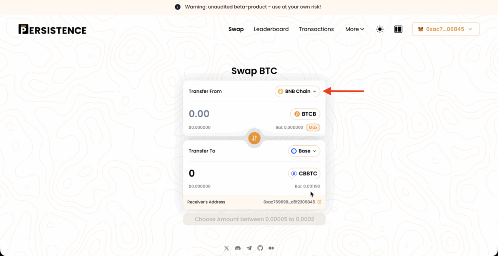 Before you get started, make sure you already have sufficient balances on BNB Chain and Base to try the product and rank in the daily leaderboard.
