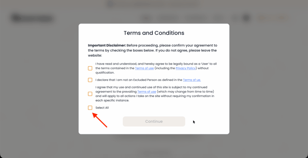 Accept the terms and click on ‘Continue’ if you wish to proceed to the next steps.